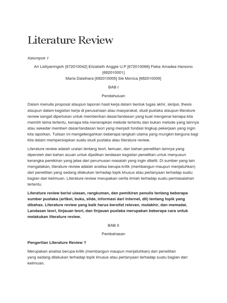Dalam Literature review tidak perlu dimasukkan definisi mengenai literature review melainkan langsung penelitian sebelumnya yang menjadi acuan dari penelitian anda. 222K Thread 42M Post. Mudah digunakan dan tidak perlu diinstal terlebih dahulu.
